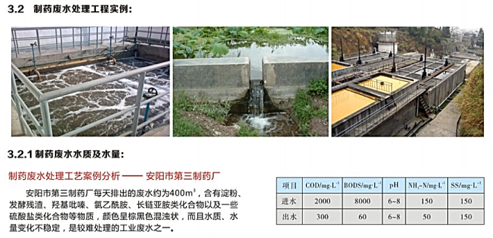 制藥工業(yè)廢水主要包括抗生素生產(chǎn)廢水、合成藥物生產(chǎn)廢水、中成藥生產(chǎn)廢水以及各類制劑生產(chǎn)過程的洗滌水和沖洗廢水四 大類.其廢水的特點(diǎn)是成分復(fù)雜、有機(jī)物含最高、毒性大、色度深和含鹽量高,特別是生化性很差,且間歇排放,屬難處理的工 業(yè)廢水.隨著我國(guó)醫(yī)藥工業(yè)的發(fā)展,制藥廢水已逐漸成為宙要的汚染源之一,如何處理該類廢水是當(dāng)今環(huán)境保護(hù)的一個(gè)難題.